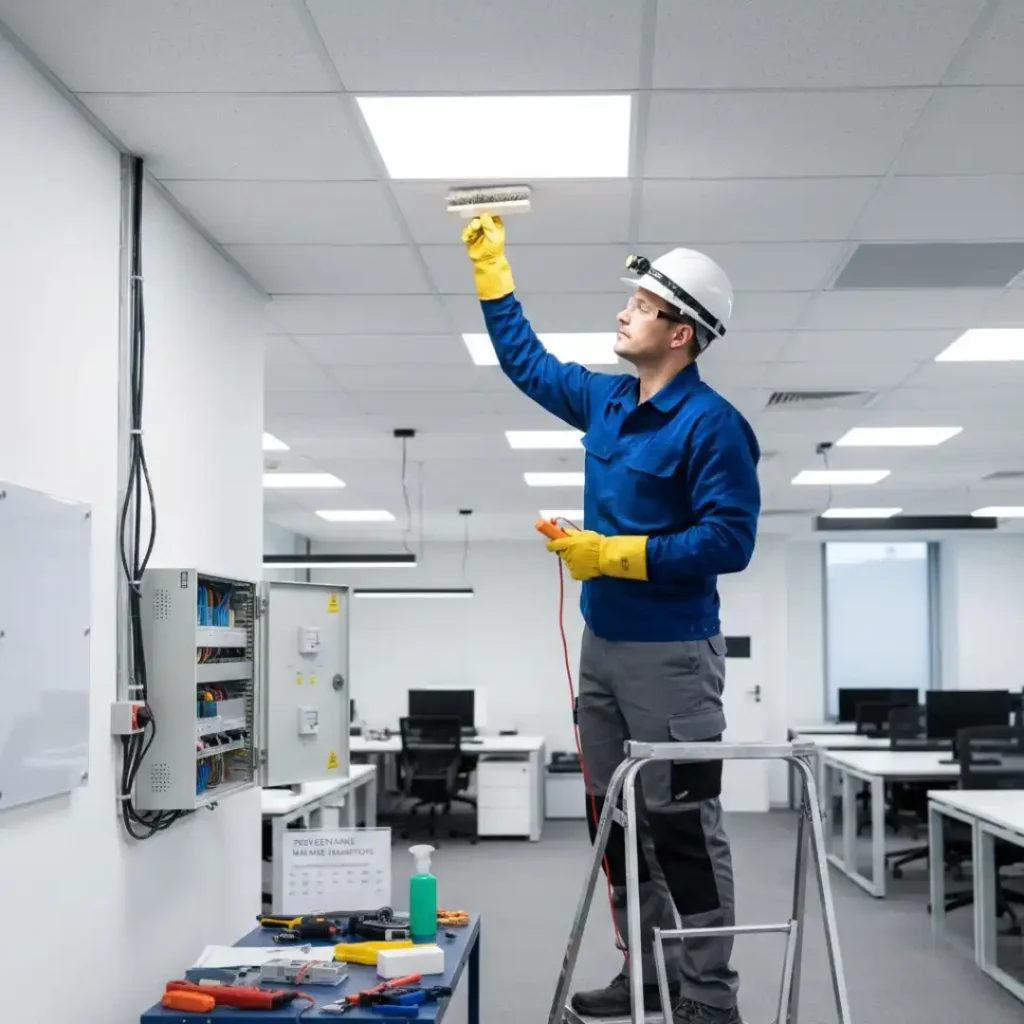 Commercial environments rely on multiple lighting types, including fluorescent tubes, high-intensity discharge (HID) lamps, and LED upgrades. Each system has unique maintenance needs and potential failure points. Common issues include the following: