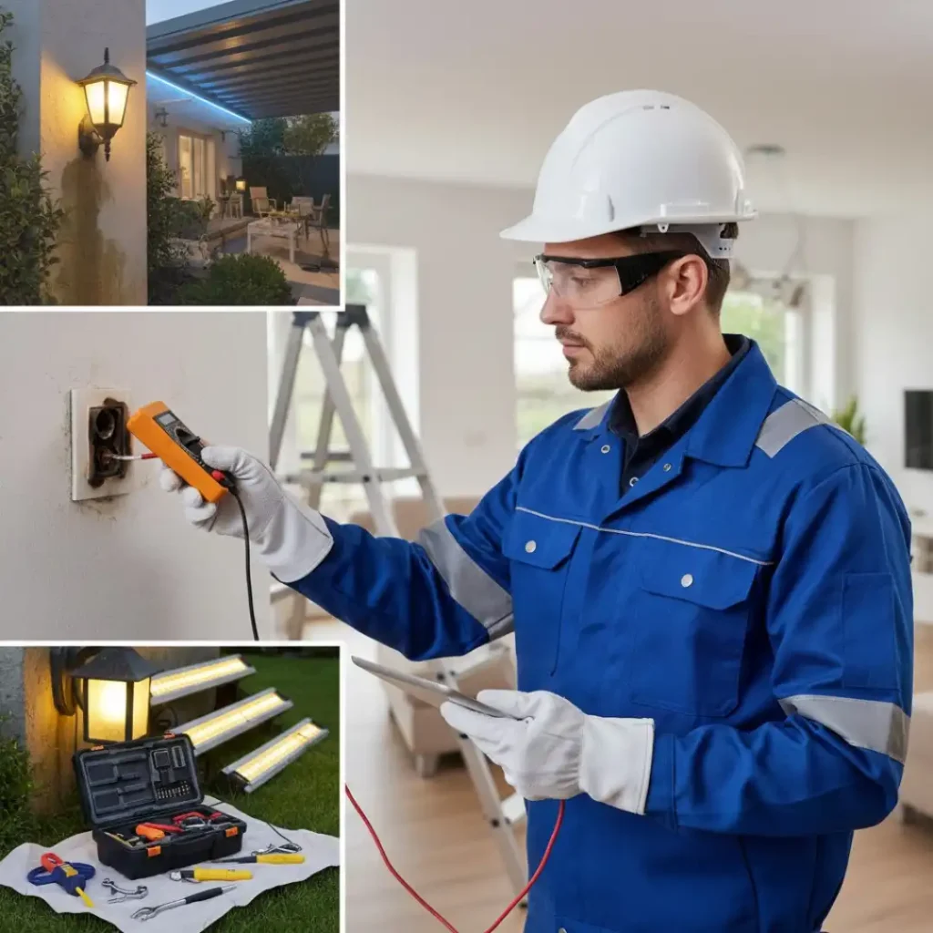 Outdoor lighting systems face additional challenges such as moisture, insects, and weather exposure. We repair and weatherproof fixtures to extend their lifespan and reliability.
